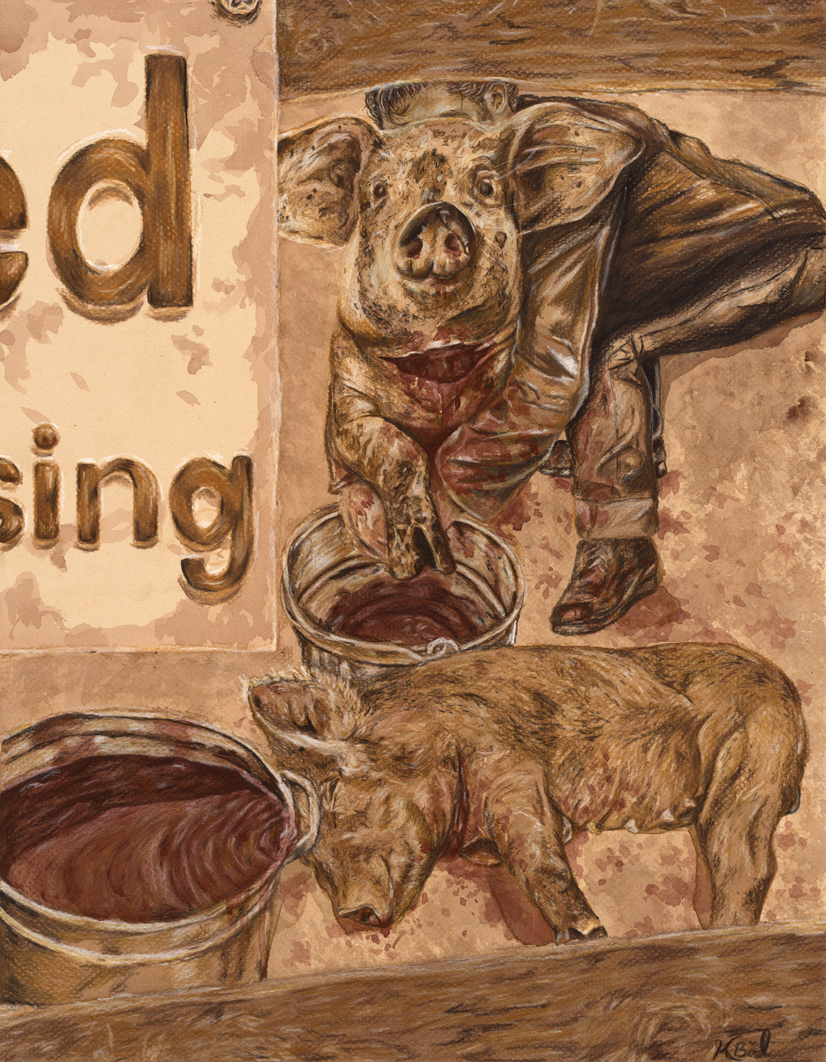 These 8x10" giclee prints are a high quality, archival, fine-art print that are hand signed and numbered by the artist. Created by layering coffee and espresso before doing fine detail with colored pencils, this piece was finished by adding a small amount of red paint into espresso to give the red tinted areas a pop of color. Only a small number of these signed and numbered prints will be available so get it while you still can!